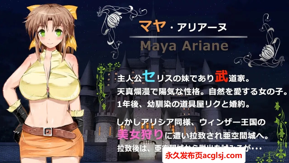 然而,作为主角塞利斯的妻子兼骑士公主的艾丽西亚,与他的妹妹、格斗家玛雅,却被温莎王国的利兹王子绑架了。